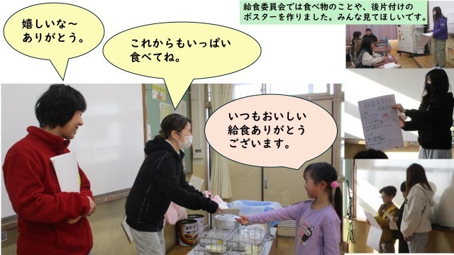 給食委員会の児童は、ポスターを作成したことを各教室にお知らせに行きました。