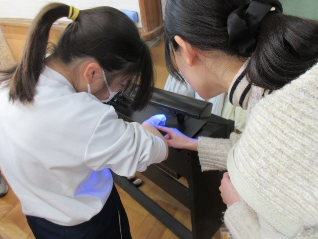 養護教諭の先生と「手をきれいに洗おう」という学習をしました。
