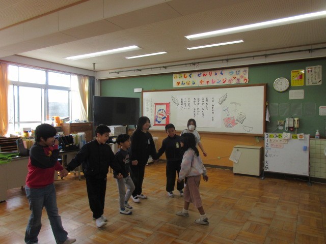 1年間お世話になった教室をきれいにした後、みんな遊びをしました。
