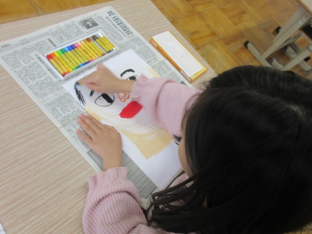自画像を描き、自己紹介カードを作りました。