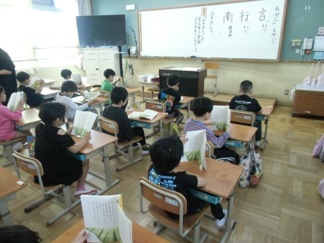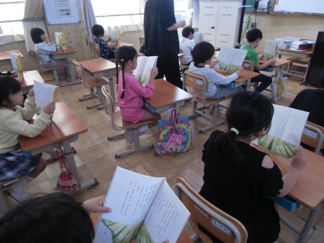 だれがどうしたのかを確かめながら、お話の様子がよく伝わる工夫を考えて音読をしています。