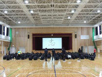 本日10日(水)3限,第1体育館で「ビジョンステージ集会」が行われました。ステージ長等から8,9年生が最高ステージ生として自覚を持って行動してほしいなど,さまざまなお話がありました。皆さんのがんばりに期待しています。