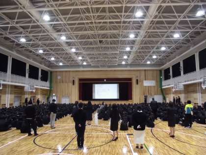 1年生は初めての全校集会の場でしたが,話を聞く態度もとてもよかったです。この後には,2年生以上に参加よる生徒会集会が行われました。