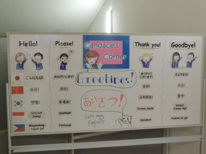ALTのナザレのコーナーも完成し,1階エレベーター横に掲示しています。今回のテーマは「いろいろなあいさつ」です。