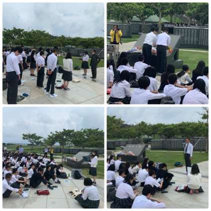 平和祈念公園でのセレモニーの写真が届きました。セレモニーの後,学級写真を撮影して,資料館の見学といった流れのようです。