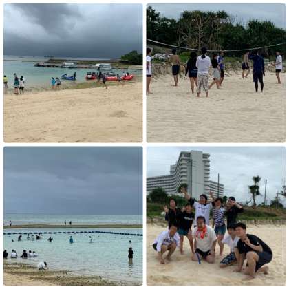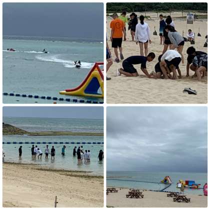 ビーチでのアクティビティーの様子です。ドラゴンボート・ビーチバレー・自由遊泳といった活動をローテーションで行うようです。学校長も参加しているようですね。一番楽しんでいるのかもしれません。海に浸かっているようですが,十分暖かい気温なのでしょうか。