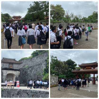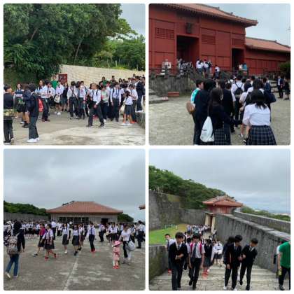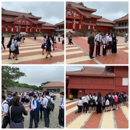 首里城見学の様子が送られてきました。私の頭の中では「♪僕が生まれたこの島の空を〜♪」と「島人ぬ宝」が繰り返し流れております。雨も降ってないようで何よりです。