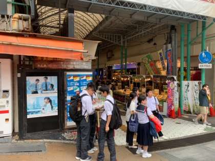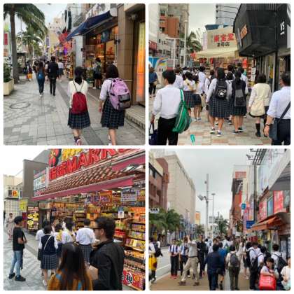 最後の訪問地の国際通りの写真が届きました。那覇では外せない観光スポットです。お土産を買いこんでいるかもしれません。お昼も済ませて再集合となっています。どんな昼食をとっているのでしょうね。あれ?お小遣いの金額の範囲でそんなに買物できたっけ?