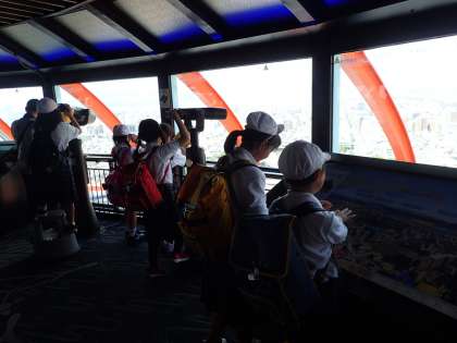 京都タワーにのぼって,京都のまちをぐるりと一望。
