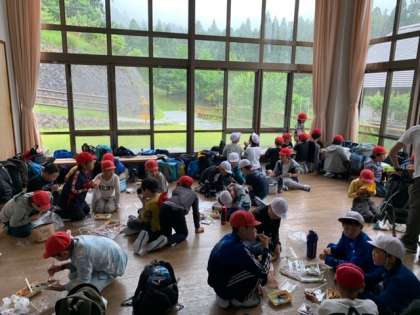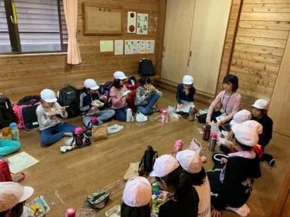お家の方がつくってくださったお弁当をみんなでおいしくいただいています!