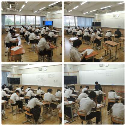 本日27日(木)5限に8,9年生におきまして「向島秀蓮単語検定」が行われました。「ムカタン」とは,向島中学校から取り組んでいる英単語検定試験です。今年度も年3回実施していきますので,英単語の練習を頑張ってください!本日は7年生は来学期から行いますが,8・9年は一生懸命英単語と向き合っていました。この調子で今後もがんばってください。