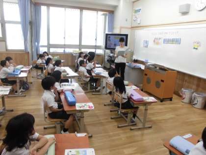 さっそく1年生のみんなに手紙が来たことを伝えると,びっくりした様子。中に入っていたお手紙を読むと,「遠い星からやってきたけんばんはあもにか」との自己紹介と,これから鍵盤ハーモニカの使い方を学習する1年生へのメッセージが書かれていました。