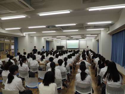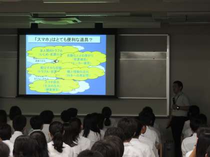 本日4日(木)6限,多目的教室で7年生は,京都市教育委員会から講師の方をお招きして「非行防止教室」を開催しました。最近,中学生が巻き込まれることが増えているネットトラブルを取り上げ,LINEなどを介して起こるいじめやいやがらせが,心や体を傷つける取り返しのつかない結果につながることをお話しいただきました。今日の学習を今後の学校生活にいかし,みんなが安心して過ごせる環境を一緒につくっていきたいと思います。よろしくお願いします。