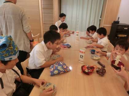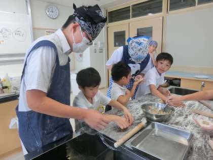 国際理解の学習で「中国」を勉強しました。1組の1〜9年生が集まって「水餃子づくり」をしました。5年生〜9年生の高学年たちは,国際理解教室の前川先生に「餃子の皮の伸ばし方」や「タネを入れて餃子を包む方法」を教えてもらい,はじめは苦戦しながらも上手につくることができました。後半からは今度は高学年のお兄さんたちが1年生〜4年生に餃子の包み方を教えてあげました。最後はゆでて完成!食べてみるともちもちとした食感とお肉や野菜のおいしい味に子どもたちは大喜び。楽しく・おいしく「中国」について学習することができました。