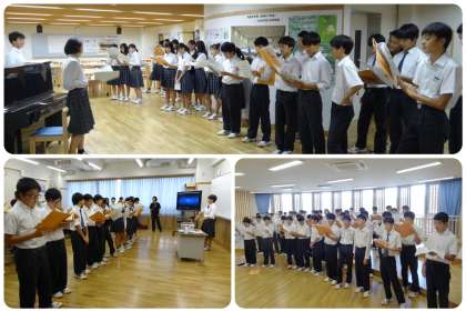 本日5日(木)6限,「秀蓮フェスティバル音楽の部」に向けての学年合唱・クラス合唱の練習が本格的に始まりました。8年の学年として,また,各クラスとして,最高の思い出が作れるよう,がんばってください!期待しています!