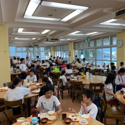 朝食の様子です。みんなしっかり食べているようです。今日の午前中は,昨日の活動の続きがあります。そして午後からはカッター体験。今日も楽しみな活動が続きます!