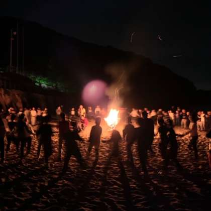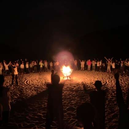 いよいよクライマックスのキャンプファイヤー,火の神の登場です!