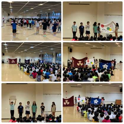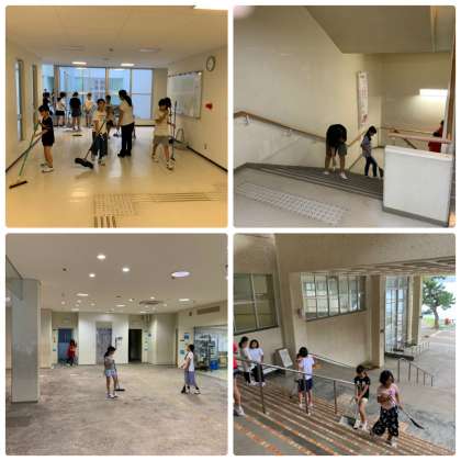 少し体調が心配な子もいたようですが,最終日,みんな元気に活動を始めています。若狭もあいにくの雨のようで,朝の集いは室内で行われ,清掃活動にもみんなで取り組んでいます。
