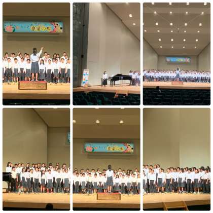 5年生の登場です。学年合唱で「つばさをだいて」を歌っています。8.9年生以外はホールで歌うことも初めてで,とてもいい経験になっていることでしょう!