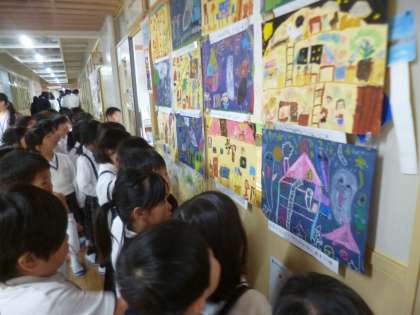 お兄さん・お姉さんの作品を鑑賞しに行きました。素晴らしい作品ばかりで,子どもたちは興味津々でした。また,舞台の部も大盛り上がりでとても楽しかったようで,大満足な様子でした。
