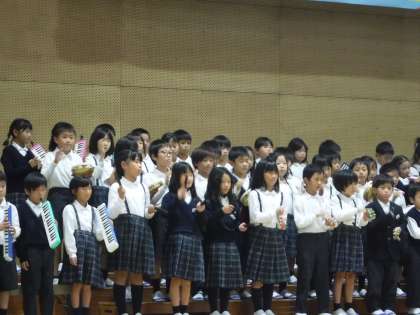 そのあとは,打楽器や鍵盤ハーモニカも加えて演奏していきました。