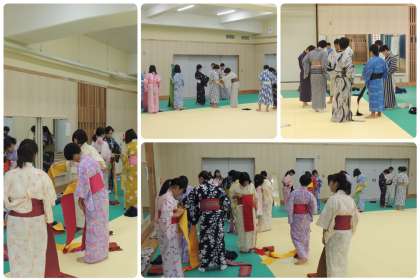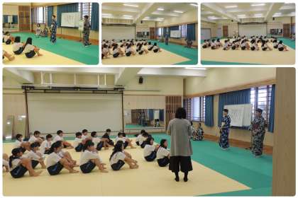 本日8日(金),7年生で技術・家庭科(家庭系列)の授業で和装指導を実施しました。先日は8年生でも実施させていただきました。伝統や文化に関する学習の充実が求められる中,家庭科で浴衣の着付けの学習の時間を設定しています。外部から専門の講師の先生をお招きし,個別に指導していただくなど,普段できない経験がたくさんできました。7年生の生徒のみなさんは,一生懸命取り組んでいました。