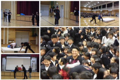 夢を追うこと,夢を実現させることについて,生徒たちに熱く語ってくださいました。講演の後は,実際にラグビーボールを使って,生徒たちと一緒にパスをしたり,タックルを受けたり受けてもらったりなど,とても楽しい時間を過ごさせていただきました。