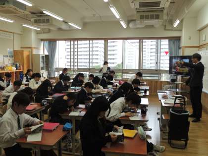 本日13日(水)6限,7年において採用10年目教員の授業研修会が行われました。「場所について尋ねたり答えたりして,必要な情報を伝えあうことができる」という目標のもと英語の授業が行われました。生徒たちは頑張って発表したり,コミュニケーションをとっていました。