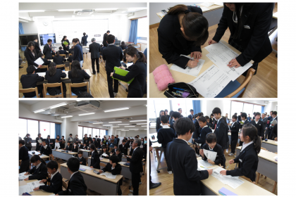 授業後は,教職員で今日の授業の研修を行いました。「今日の資料はあれでよかったのか」「子どもたちが社会に出た時に,差別をしてはいけないと思える力を養う授業だったか」など,本当に活発な意見が出ていました。