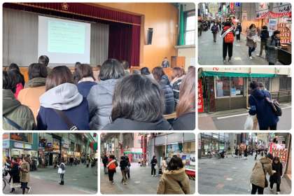 本日7日(土)の午前に桃陵中学校・大手筋商店街を中心に伏見西支部PTA人権尊重街頭啓発活動が本校のPTA本部役員,広報委員も参加して行われました。今年度も12月の人権月間の機会をとらえ,一人一人の人権が尊重され,かけがえのない“いのち”が輝く社会を目指して,広く市民に呼びかけるため,街頭で啓発活動を行いました。