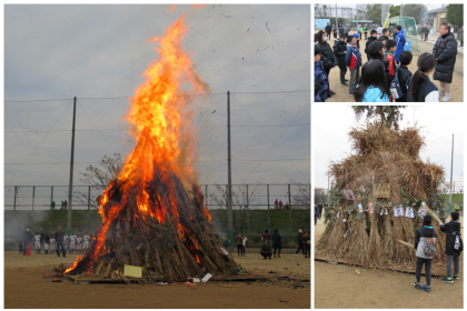 1月12日(日),元向島南小学校にて,向島南自治会連合会主催「とんど祭」が行われました。お正月の間に来られた年神様をお送りするという伝統行事です。