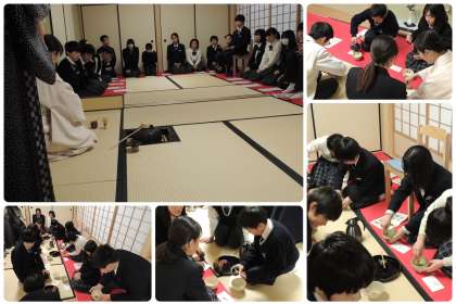 本日23日(木),7年生は「こころ科」授業の一環として茶道体験を行いました。お茶に込める思いやりやおもてなしの心を感じとり,伝統を難しい・堅苦しい・自分とは関係ないととらえず,楽しく体験する中で,伝統の中に受け継がれてきた「相手を思いやる心」に気づき,継承していく心情を養うことを目的とし開催しております。いつまでもお茶を点てる気持ちを忘れずに,そして今日の体験をしっかり頭の中に刻んでおいてほしいと思います。