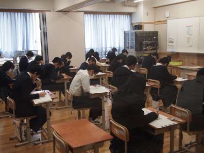 9年生にとって義務教育最後の定期テスト。その最終日です。今後入試が控えていますので“最後”という感覚はないかもしれません。とにかく目の前にある問題に一生懸命取り組んでいる…といったところでしょう。これから卒業まで「最後の」という言葉が何度も使われると思います。今日のテストも,様々な“最後の”行事も,最後まで全力でやりぬいてほしいと思います。Go All Out!