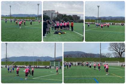 26日(日),吉祥院グラウンドにおきまして「京都市小学校部活動全市交流会タグラグビーの部」が開催され,本校からも5・6年生が2チーム編成で出場しました。各チーム3試合行いました。日頃の練習の成果を十分に発揮して,がんばってくれていました。今後も楽しくがんばってください!