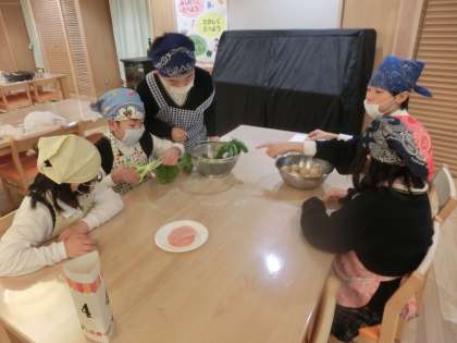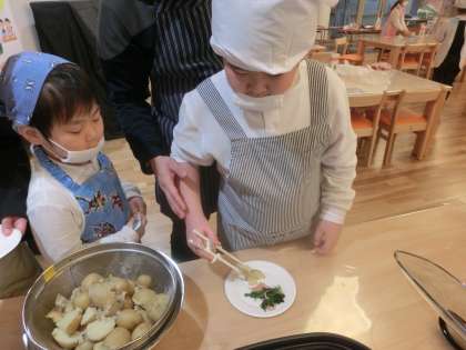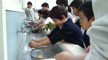 生活単元学習で調理実習をしました。自分たちで育てたじゃがいもとほうれん草を使って「じゃがバター」と「ほうれん草の炒めもの」をつくりました。1年生〜6年生でグループをつくり,自分たちの食べる分をグループで力を合わせてつくりました。これまでの生活単元学習で野菜の種まきから始まり,だんだん大きくなっていく様子をみんなで楽しみにしながら観察していました。大きく育った野菜が収穫できた時には子どもたちも大喜びでした。完成した「じゃがバター」と「ほうれん草の炒めもの」は上手に出来上がり,「おいしい!」「もういっこじゃがいもおかわりしたい!」とニコニコしながら頬張る子どもたちの様子を見ることができました。自分たちの力でがんばって育てた野菜をいただく体験はとてもいいものですね。