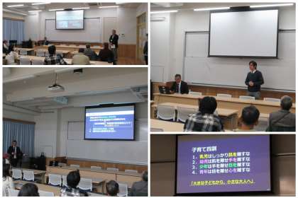 2月4日(火)午後7時から本校会議室におきまして「令和元年度向島地域生徒指導連絡協議会総会・家庭地域教育学級」が開催されました。地域家庭教育学級では「今どきの子どもとの向き合い方・付き合い方〜ネット・スマホ対策を考える〜」という演題で京都市教育委員会生徒指導課指導主事様からご講演をいただきました。ネットいおける現在の状況など,子どもたちとどう向き合うべきかという視点でお話をしていただきました。また,総会では「令和元年度活動報告」が行われ,承認されました。