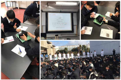 本日6日(木)午前,7年生は「科学センター学習」に出かけました。各クラスが4つのテーマ「川原の石(地学)」「森のおくりもの(生物)」「目には見えない気体の世界(化学)」「センサーの化学(物理)」に分かれて学習を行いました。各クラスとも一所懸命取り組んでいました。これを機会に,少しでも理科に興味を持ってほしいと思います。