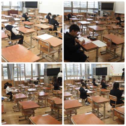 登校日が中止になり,本日から特例預りのみの実施をしております。各教室に数名ずつといった形で分散して行っています。健康観察を行ったうえでの登校をお願いしていますので,来ている生徒は皆元気です。多くが休校に入る前に出された課題に取り組んでいました。学校ではお友達とお話をしたりする機会がありますので,マスクの着用をお願いします。学校でも手洗いをしっかりするよう指導いたします。