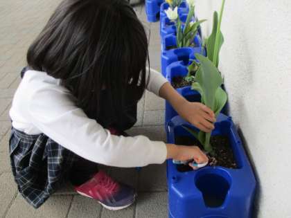 先しゅう,みんながそだてた チューリップのくきを きりました。