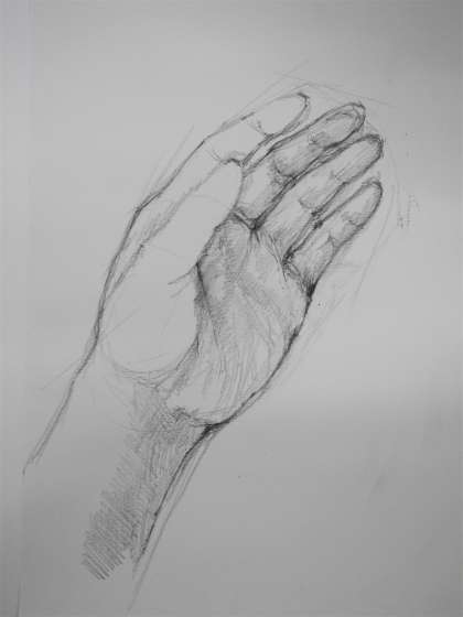 皆さんも一回で描こうとせずに何回も何回も手をよく観察して,描いてくださいね。