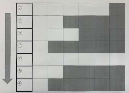 やりかた2:㋐〜㋖のもじを,たてによんでみよう。