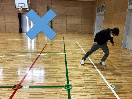 反復横とびは,20秒間に1m間隔に引かれた3本の線を何回越すか,または何回ふむかで記録が決まります。記録を伸ばすコツは“高くとばない”と“頭を中心に残す”です。ぜひ,チャレンジしてみましょう!