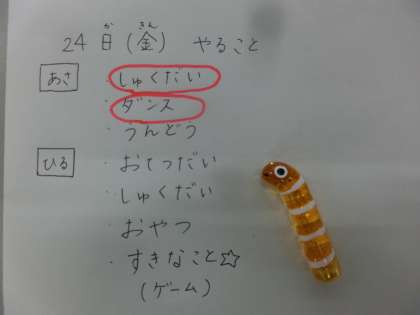 一日のすごし方を カレンダーやメモなどに書き,