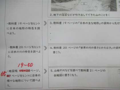 5年 休校中の課題プリントの訂正