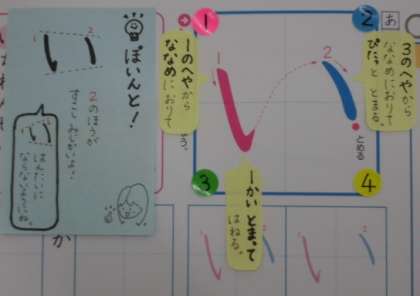 さて,きょうのひらがなは 「い」と「こ」です。ひらがなのがくしゅうを すすめるうちに,すこしずつ こつをつかんできたひとも いるかもしれませんね。