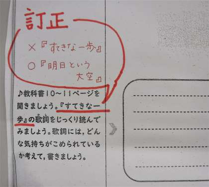 「家庭学習課題(4月分)」音楽の課題に,訂正があります。