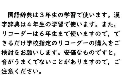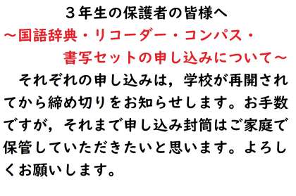 臨時休校前にお配りした学校で購入できる物品について,お知らせします。