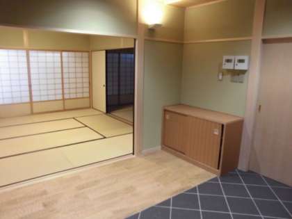 つづいては・・・りょかんのような へやですね。「こんなへやが がっこうに あるの?」と おもったひとも いるでしょう。このへやは,「せいれんの ま」という へや(わしつ)です。このへやに はいると,たたみの いいにおいがして,とても きもちが いいです。がっこうで あることを いっしゅん わすれてしまいそうに なります。このへやでは,おちゃを たてる がくしゅうをしたり,みんなで おちゃを のんだり します。がっこうが はじまったら,みんなで みにいきましょう!