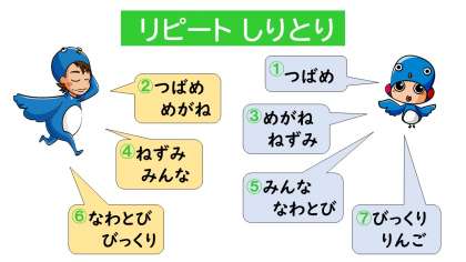 「リピートしりとり」は,覚える言葉を増やしていってもおもしろいです。