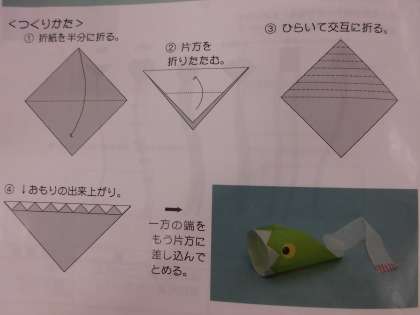 さかなのひれなどに,ティッシュペーパーやおりがみをつけるとかわいいですよ!